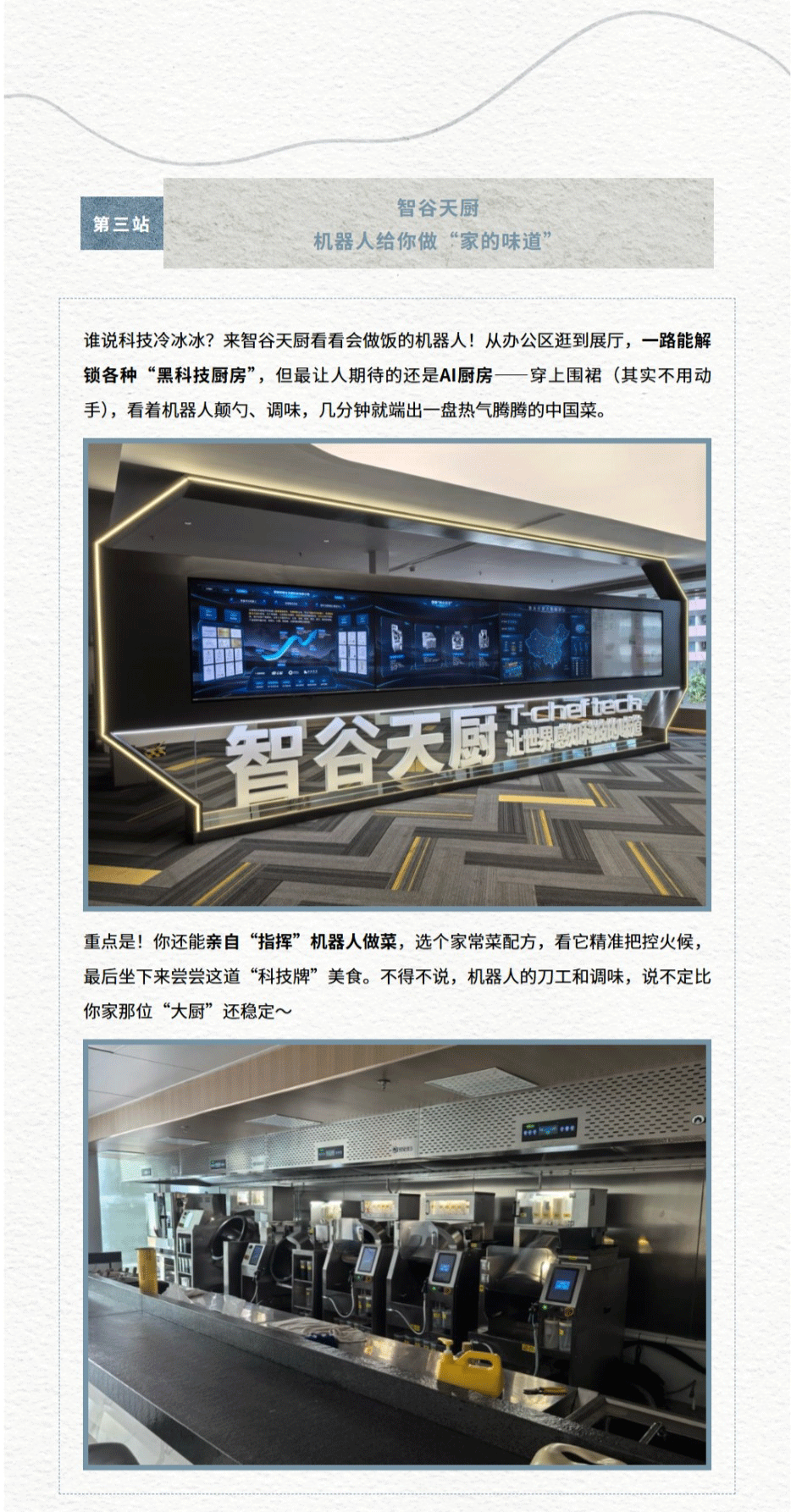当机器人掌勺的“家的味道”遇上硬核科技创新,会碰撞出怎样的火花?作为本次城市探索路线的“味蕾担当”,智谷天厨荣幸受邀参与第四届“正深圳 正青春”科技线探访,向中外青年展示中国烹饪机器人的智慧魅力!在这里,您不仅能亲眼见证AI精准复刻大厨手艺,还能亲自“指挥”机器人做一道专属菜肴——科技的温度,就藏在热气腾腾的烟火气里。