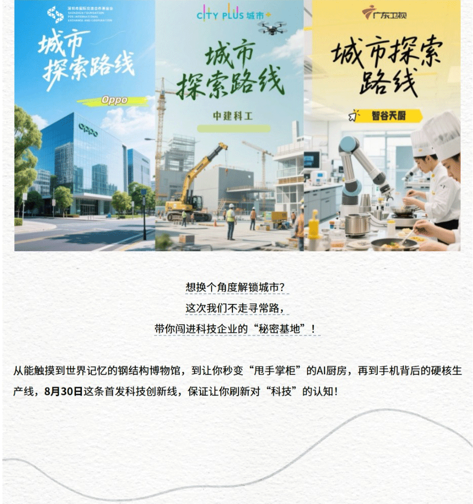 本次路线更涵盖OPPO运动健康实验室、中建科工钢结构博物馆等科技地标,带你解锁深圳的创新基因。8月30日,和我们一起触摸钢铁的坚韧、感受数据的脉搏、品尝未来的味道,与智谷天厨共赴这场科技与生活的奇妙对话!